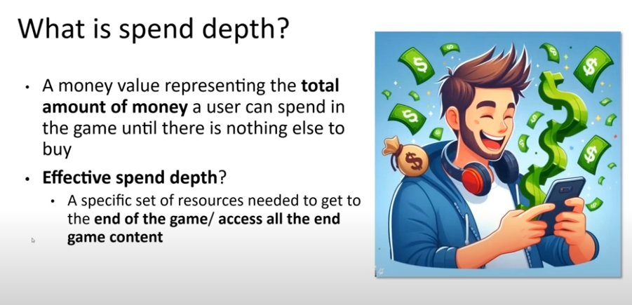 这就有了另一个概念,就是有效消费深度,它指的是获取游戏所有最终内容或者通关游戏所需要的一组特定资源数量,这两个是不同的术语和概念。