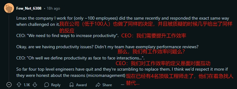 社区一边倒:远程并不影响工作效率、重返办公室就是变相裁员!