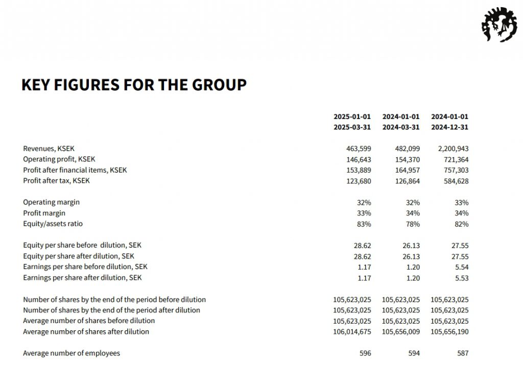 游戏新闻报道/海外SLG大厂Paradox Interactive(以下简称P社)4月24日发布的财报显示,该公司2025Q1收入为4.6亿瑞典克朗(约合人民币3.5亿元),同比降低4%;营业利润1.47亿瑞典克朗(约合人民币1.1亿元),同比下降5%;扣除财务项目后利润1.54亿瑞典克朗,税后利润1.24亿瑞典克朗,同比几乎持平。