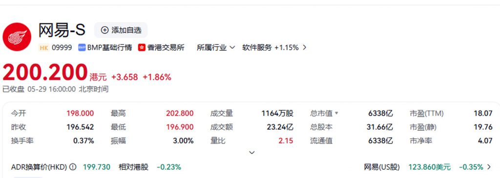 本月中旬,网易刚刚发布了今年Q1财报,游戏业务净收入达到234亿元,同比增长14.5%。而在Q1财报发布之后,网易股价也是持续增长,5月29日网易港股股价盘前曾一度达到217港元,创下网易港股股价新高、而折换成美股ADR同样是网易历史新高。截止今日完稿时港股收盘,网易港股股价依旧站住了200.2港币的历史新高的高点,超过了2021年疫情后的股价最高值。