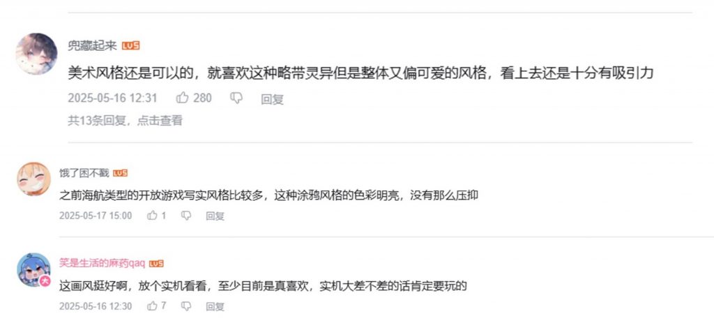 目前关于《遗忘之海》的公开信息很少,官方只发布了一个3分多钟的概念PV。而从玩家反馈来看,无论是国内玩家还是国外玩家,都对游戏的皮相给予了高度认可。比如有国内玩家就提到之前的航海题材游戏,大多为写实风格,而《遗忘之海》这样的涂鸦画风整体上更加明亮。