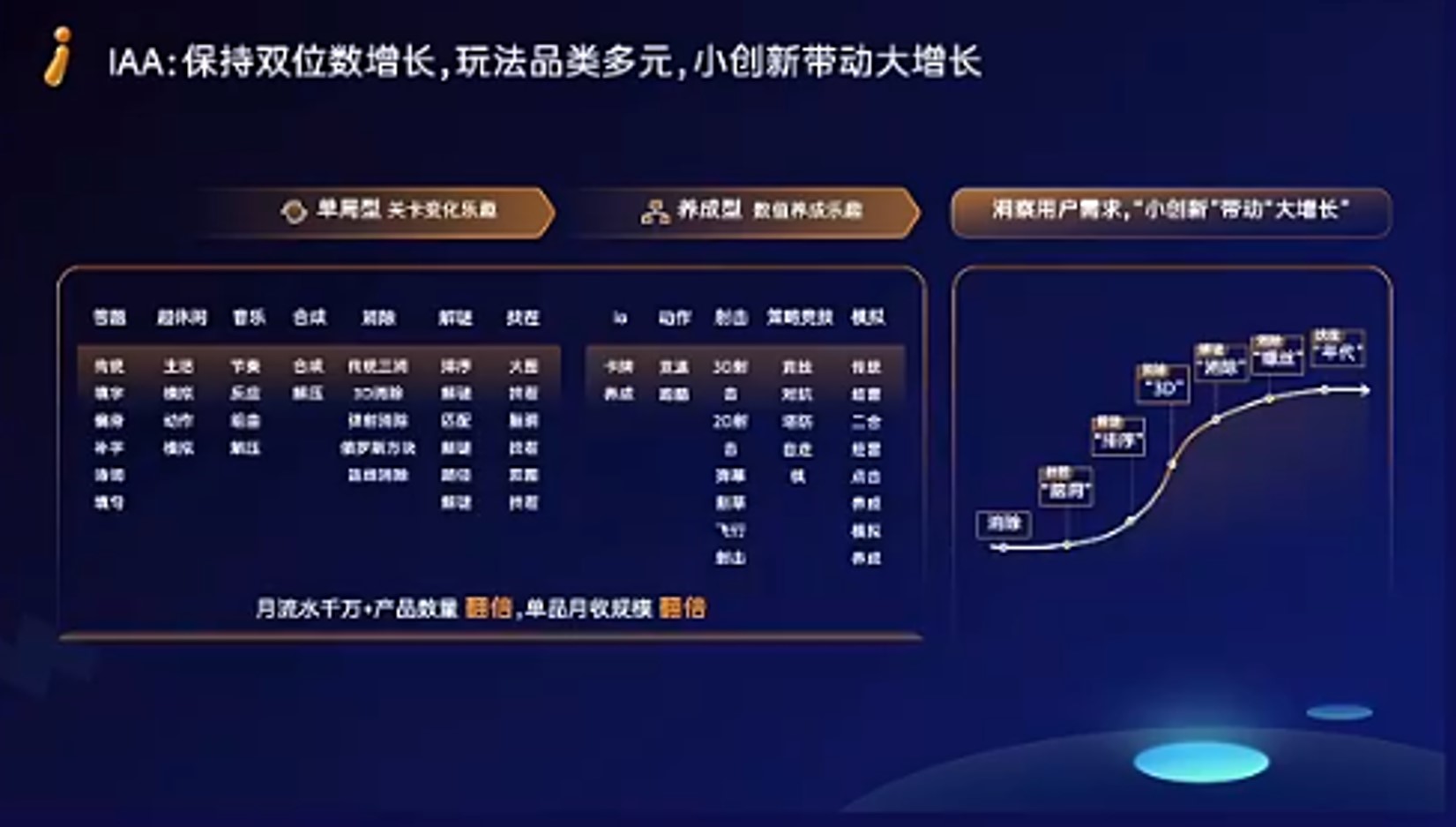 可以说今年大盘在增长,玩法在进化,这一现象放到整个时间长河里对IAA生态都是成立的。每一次玩法进阶、品类进化,都会带动生态的全新迈进。