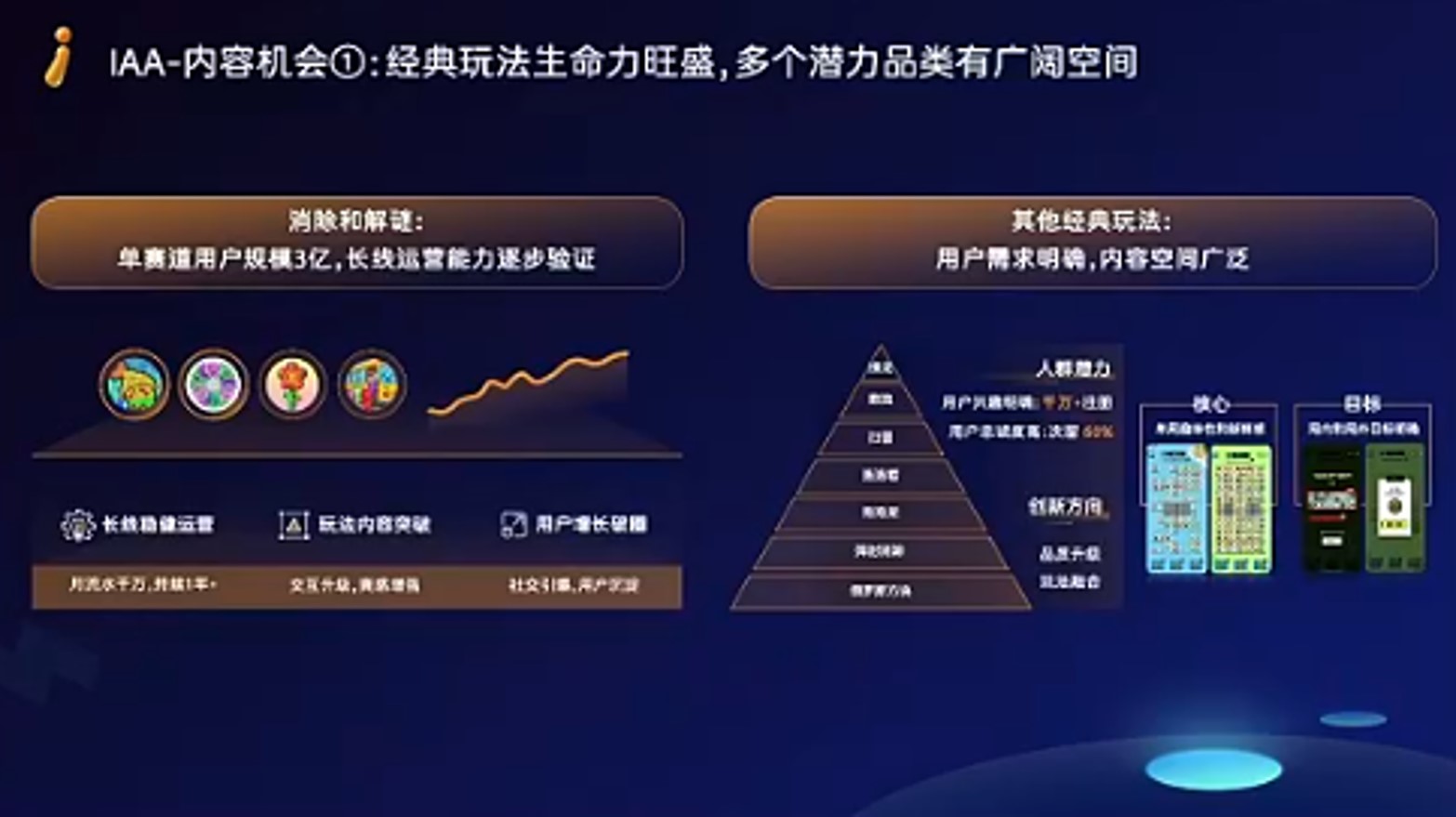 接下来,第四个视角我们聊一聊经典玩法。其实跟刚才提到的IAA类似,我们认为经典玩法永远不会过时。