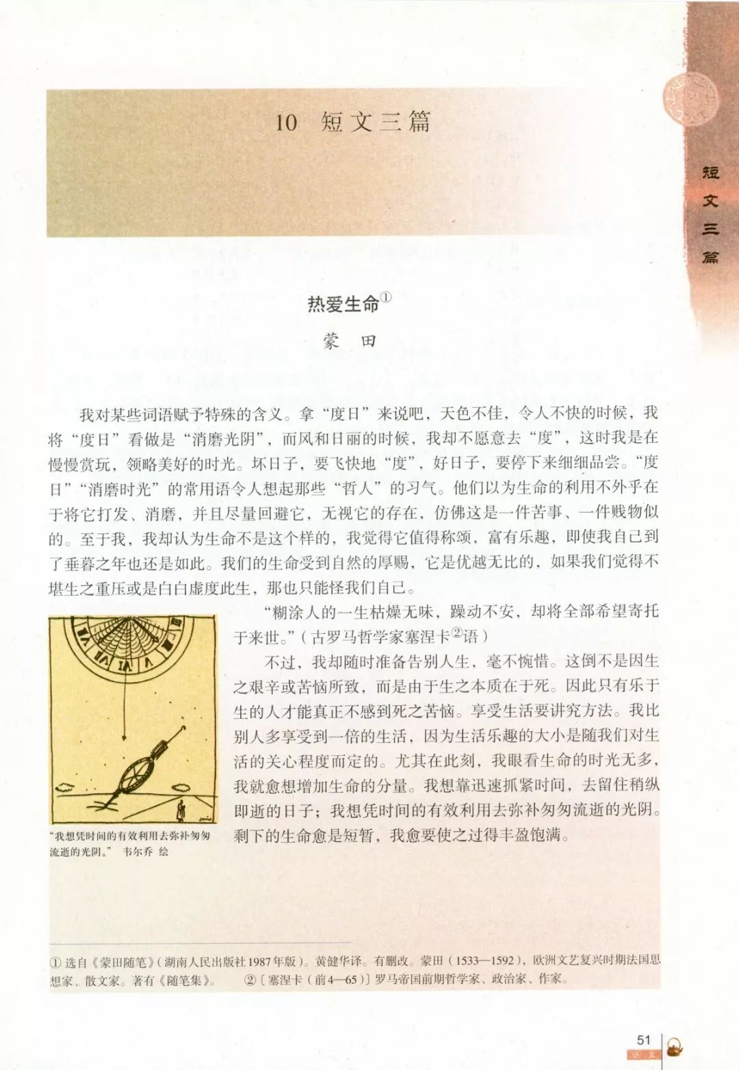 大概是在高二的时候,同样是在语文课本上,我读到了蒙田的《热爱生命》。这篇文章让我正式接触“哲学”这门学科。我从图书馆借了蒙田的散文集来看。在那个时候,蒙田就像是我的导师一样,我如饥似渴地阅读他的文章,希望从中汲取某种生活上的启示。