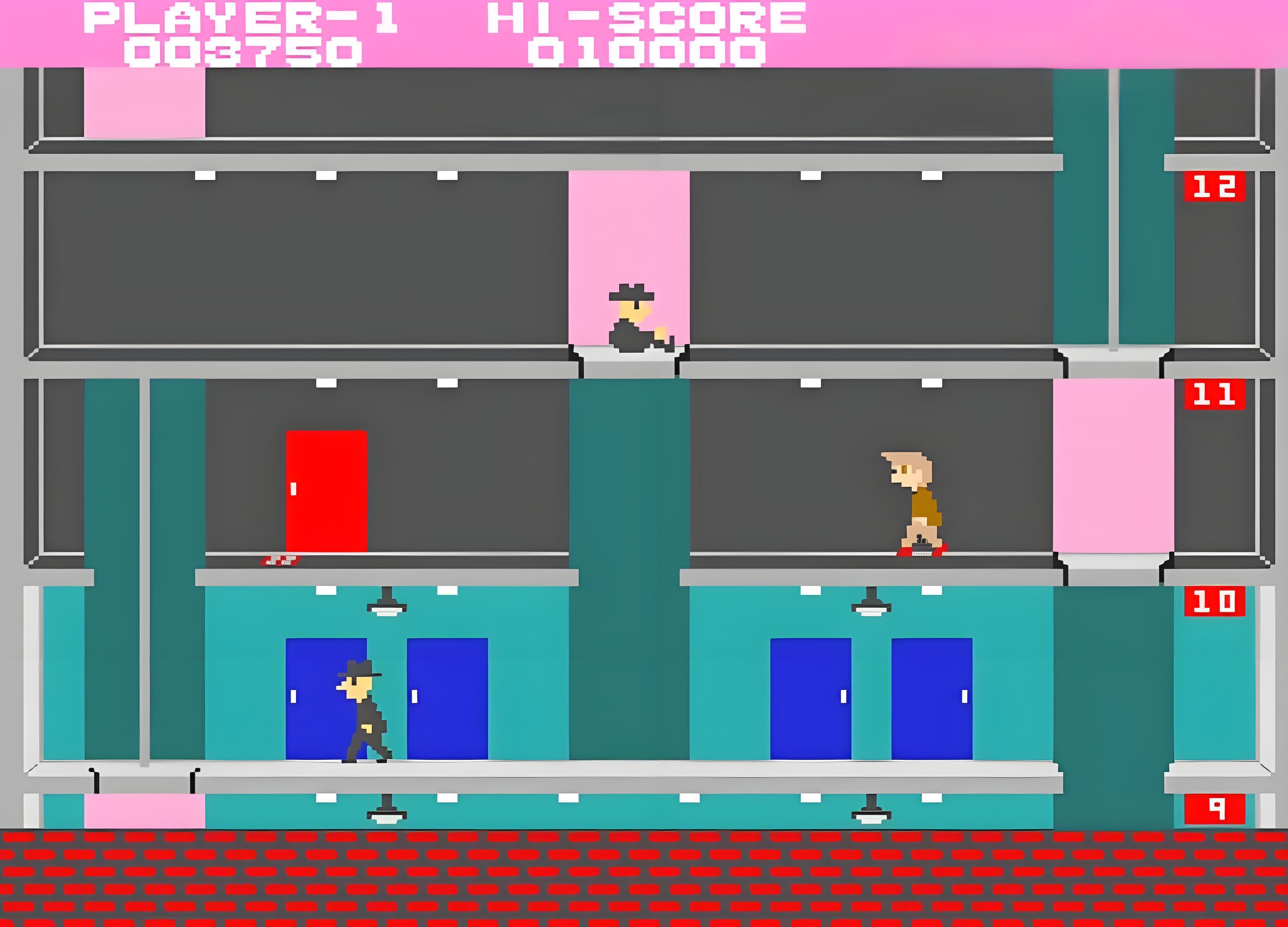 我被这个游戏吸引,这个“小偷”从容地在大厦的各层穿梭,那穿梭工具就是电梯了,这电梯有直梯也有滚梯,直梯是自行上下移动的,当你走到直梯上就可以操纵直梯上和下,我最喜欢看直梯的电梯间压敌人的画面,当然如果你操作的“小偷”一不留神走到电梯底部,也会被自上而下的电梯压到。