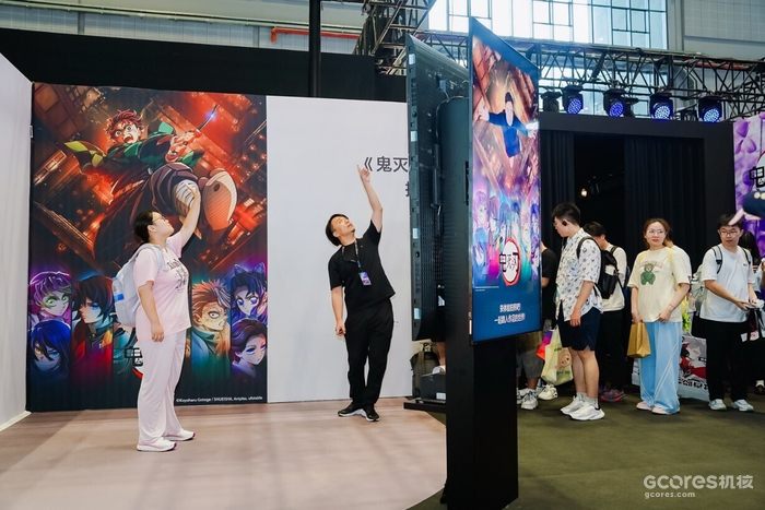 《鬼灭之刃》沉浸式体验区,观众可以沿着《鬼灭之刃 柱训练篇》的剧情,体验炭治郎与柱面对宿敌鬼舞辻无惨时所展现出的决心。在照片拍摄区,动画粉丝可以“穿越次元”沉浸式拍摄以无限城为背景的纪念照片。