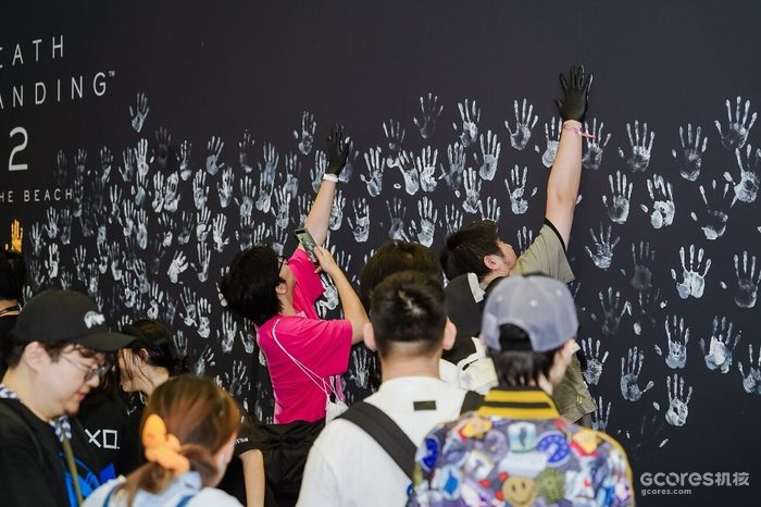 l PlayStation游戏体验区聚集了大量游戏玩家,著名游戏制作人小岛秀夫新作《死亡搁浅2:冥滩之上》吸引玩家争相试玩。游戏玩家们在“手印墙”上留下自己的手印,获得独特同框纪念。