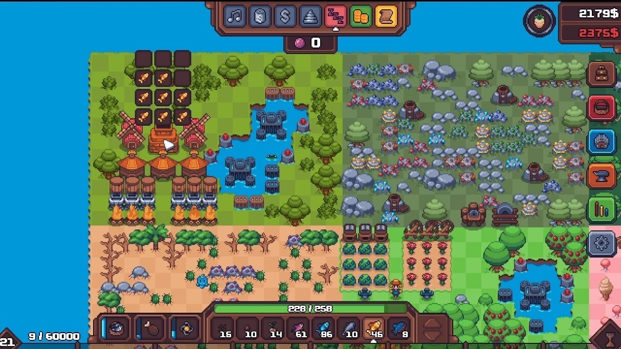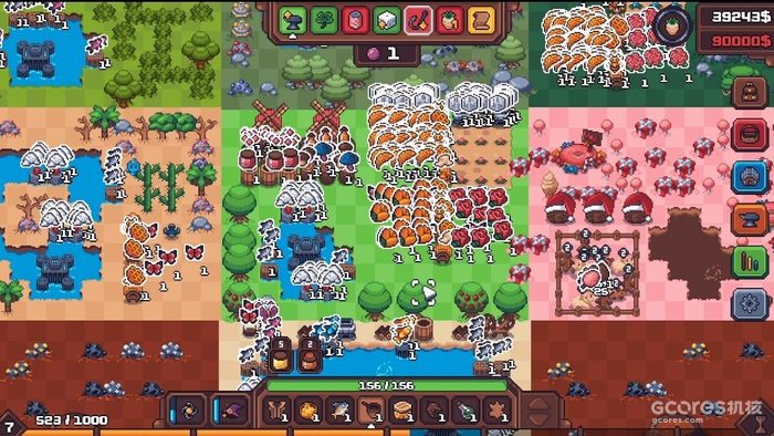 正式版游戏现拥有多种地图板块:拥有丰富资源的初始平原,能够让玩家有个更轻松的开局;遍布石头的山脉,可以让玩家掌握丰富的矿产资源;满是巧克力和冰淇淋的糖果乐园;甚至还有不能种庄稼的火山,这里虽然炎热,却隐藏着意想不到的特产。每一块区域都拥有特殊效果与特色建筑,并且每局的资源与板块都将完全随机,让玩家充满了极大的探索感与冒险感。