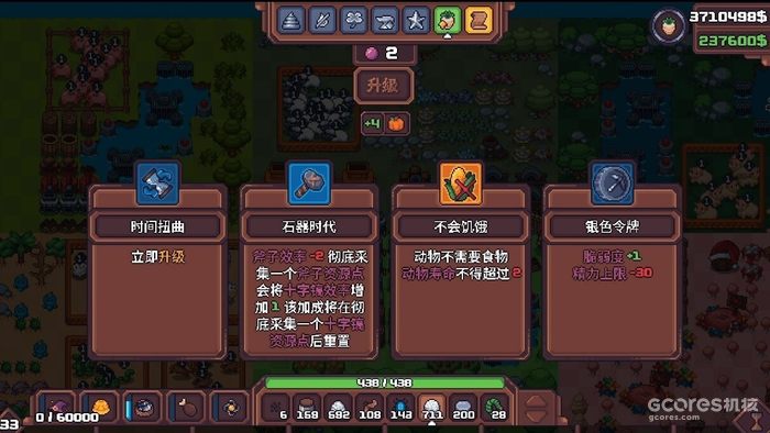 《另一个肉鸽农场》不同于其他种田游戏,是没有主角和任何NPC的,可这样的设计却反而回归了农耕游戏的本质,因为这里没有复杂的角色养成,只有播种、收获与土地对话的沉浸式快乐。每次开局地图随机生成,搭配经典的三选一技能机制,让每一次耕种都成为独一无二的策略冒险。而这一切由治愈系像素美学承载:圆润的作物摇曳生风,动物伙伴的憨态可掬,让最朴素的农耕劳作焕发出童话般的治愈力。