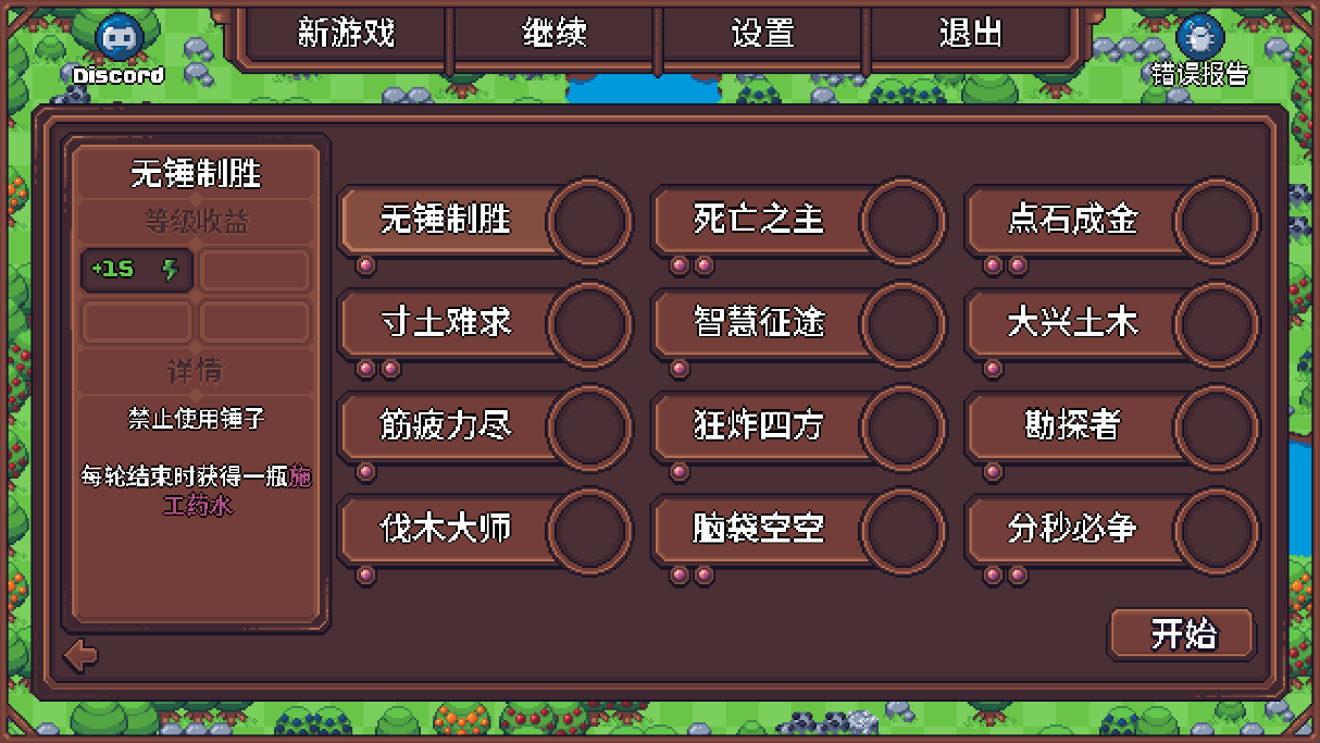 在挑战模式中,作者设置了多种“魔鬼清单”来让游戏更具挑战,比如【寸土难求】中,玩家最多只能拥有3块土地,那就意味着玩家要绞尽脑汁在这三块土地上规划资源从而通关。又或者在【死亡之主】中,平日偷吃你庄稼的乌鸦全部变成了僵尸,它们甚至还会掉落某种特殊物品。【狂炸四方】、【脑袋空空】、【无锤制胜】、【分秒必争】单看这些挑战题目就禁不住挠头,到底会有哪些诡异条件等着玩家。
