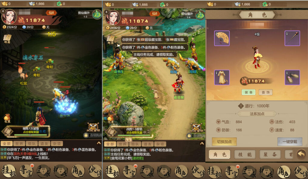 养成系统是放置类游戏绕不开的一大看点。《道友来挖宝》采取的正是惯用的多线养成模式,把整体的战力提升,切分为修为提升、装备锻造、伙伴养成、技能搭配等多个模块。这种“多线并行、层层叠加”的养成逻辑虽然不新鲜,但配合上小游戏短周期、高频触达的特性,能在短时间内制造出“进步飞快”的错觉,进而提升短期留存。