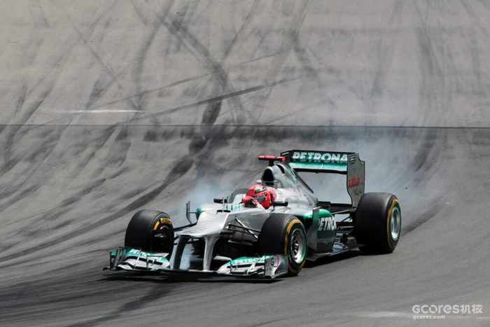 当然,这并不是说舒马赫在轮胎统一规格的时代无法获得成功;毕竟在没有轮胎优势的时代,他也赢得过多次世界冠军。但毫无疑问的是,轮胎大战时代的这些定制轮胎放大了他的优势,而复出之后的轮胎统一规格时代将这一切几乎完全剥夺。
