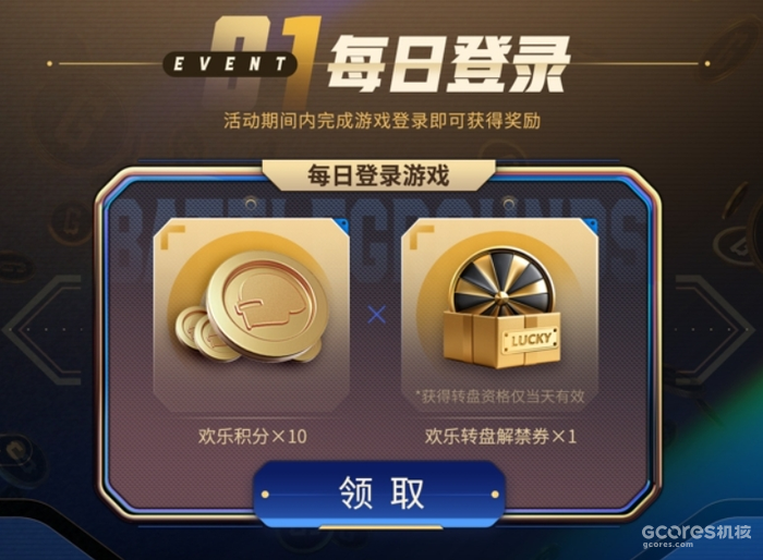 活动1:每日登录,活动期间内每天登录游戏即可获得欢乐积分及欢乐转盘解禁券,欢乐转盘解禁券需要在获得当天使用,解锁转盘抽奖资格。