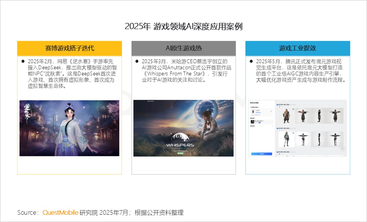 (4)AI在游戏领域进入大模型深度应用阶段,并开始尝试AI原生游戏的开发。