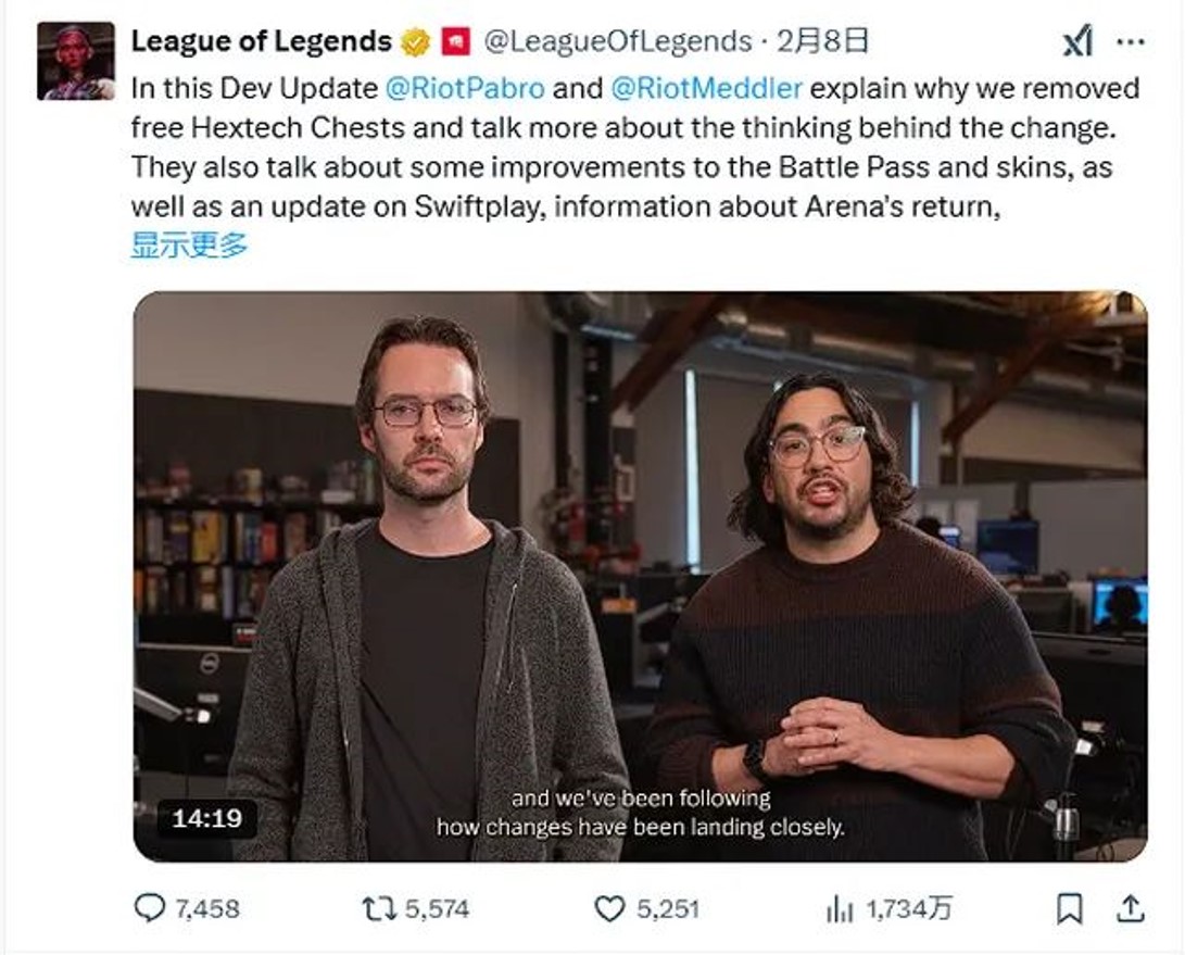 其实“想赚钱”这句直白的话,不同的人听会有不同的感觉。从游戏新闻这种业内同行的视角来看,这属于“话糙理不糙”,因为所有项目都想赚钱,尤其是拥有一定团队规模、持续更新的服务型游戏,各家厂商对于旗下项目都会划定盈亏线,某种程度上将这种话说出来其实多少也反映出项目团队的营收焦虑。这也令游戏新闻想到今年年初《英雄联盟》首席制作人也是直白地对外表示“为了保证《英雄联盟》的可持续性发展,我们得出结论认为我们需要免费赠送更少的皮肤。”