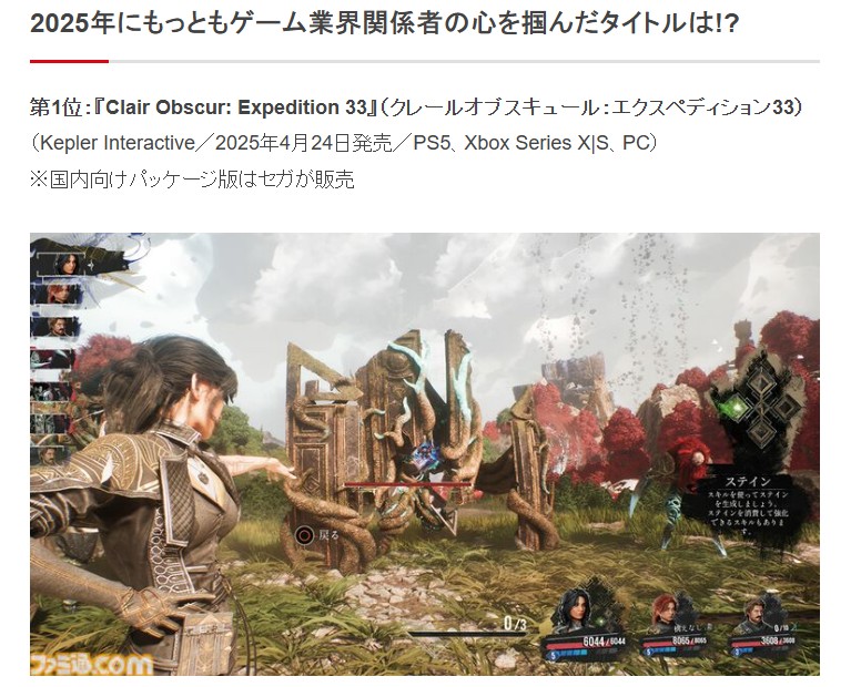 游戏新闻报道/近日,日本最权威的游戏媒体之一《Fami通》正式公布了“超流行游戏大赏2025”的最终评选结果。摘得桂冠的,不是任何一款本土作品,而是一款来自法国的JRPG——《光与影:33号远征队》。游戏新闻也很难数清这是《光与影:33号远征队》拿到的第几个年度最佳了。