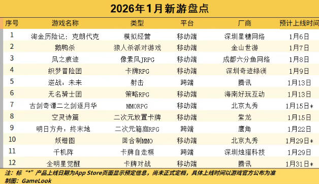 游戏新闻报道/2025年已经结束,过去一年时间里,国内游戏市场其实没有太多重磅新品上线。而到了2026年情况是否会发生变化?据游戏新闻统计,1月预计有12款新游上线,数量不多,但重磅程度却不小。