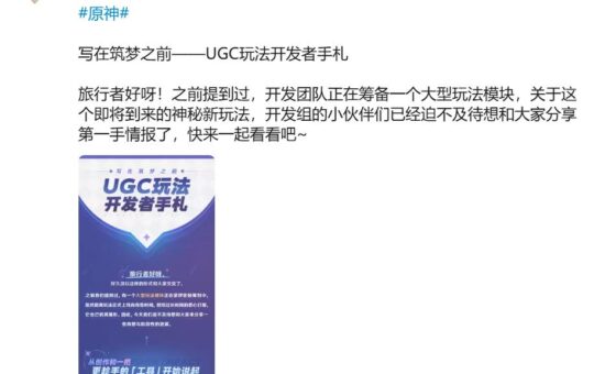 《原神》官宣:今年放出UGC玩法,游戏资产几乎全开放,玩法玩家说了算? | 游戏观点 | 游戏报道
