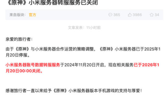 原神小米服务器今天正式停服首个手机渠道服熄火