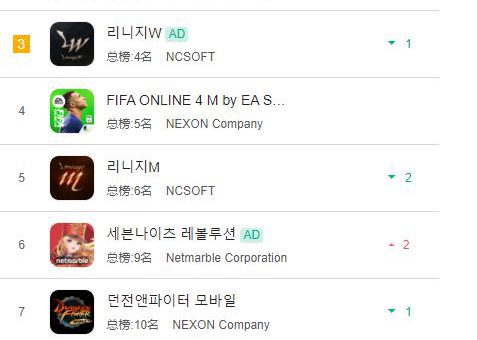 在韩国手游市场,3N(NEXON、NCS...