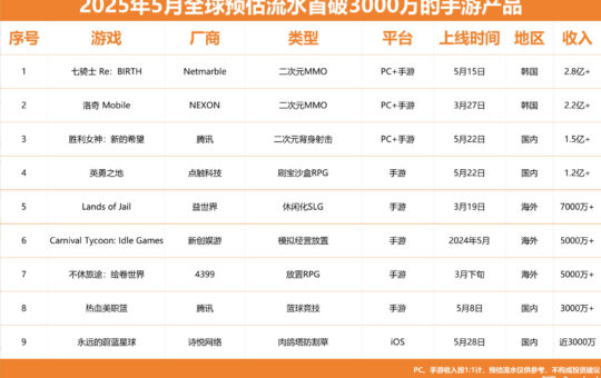 5月新游戏收入榜:胜利女神领衔、3款二次元收入破亿!多款小游戏大获成功 | 游戏观点 | 游戏报道