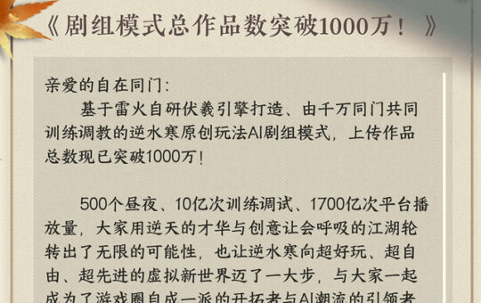 1000万UGC!《逆水寒》“AI剧组”如何重塑MMO,并引燃一场“同门之争”? | 游戏观点 | 游戏报道